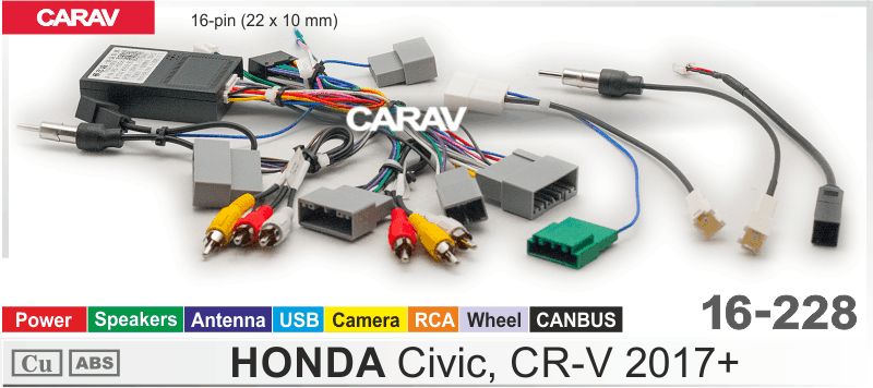 CARAV 16-228 Комплект проводов для подключения Android ГУ (16-pin) на а/м HONDA Civic, CR-V 2017+