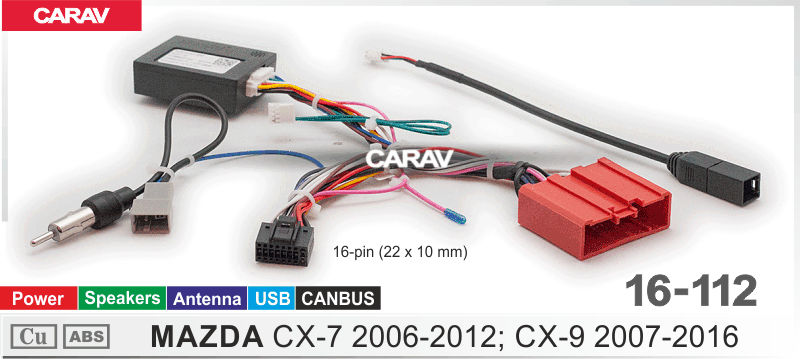 —CARAV 16-112 Комплект проводов для подключения Android ГУ (16-pin) на а/м MAZDA CX-7 2006-2012 CX-9 2007-2016 / Power + Speakers + Antenna + USB + CAN